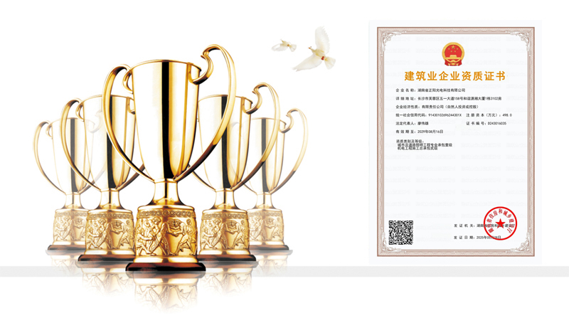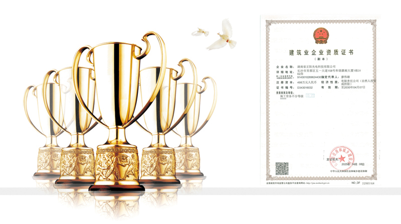 湖南省正陽光電科技有限公司是一家從事亮化工程及大型燈光藝術(shù)的設(shè)計、制作、安裝和維護(hù)于一體的專業(yè)化公司。公司資質(zhì)齊全、管理嚴(yán)謹(jǐn)、技術(shù)先進(jìn)、實(shí)力雄厚,取得了城市及道路照明工程專業(yè)承包壹級資質(zhì)、照明工程設(shè)計專項甲級資質(zhì)、機(jī)電工程施工總承包貳級資質(zhì)、施工勞務(wù)等資質(zhì)、國家高新技術(shù)企業(yè)、國家“重質(zhì)量·守誠信”示范企業(yè)。